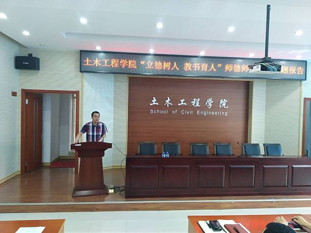 为深入学习贯彻“习近平新时代中国特色社会主义思想”和“党的十九大精神”、全面推进“两学一做”学习教育常态化、制度化的重要指示精神,结合党的十八届三中全会通过的《中共中央关于全面深化改革的若干重大问题的决定》中提出的有关“立德树人”的指示精神与《Bwin必赢网址加强和改进师德师风建设实施方案(试行)》文件精神。Bwin必赢网址组织开展了“立德树人、教书育人”师德师风建设专题培训方案及网络培训学习计划系列活动,培训旨在进一步提升教师思想政治素质,培育优良师德师风,让广大教师坚定理想信念,增强爱国情怀和敬业精神;进一步提高广大教师法治素养,引导广大教师廉洁从教、依法执教,遵守学术规范;进一步激发广大教师的职业荣誉感和教书育人的积极性、创造性,使师德素养内化于心、外化于行。7月12日下午14点,Bwin必赢网址力学教研室贾杰副教授为全院教师做了关于“‘立德树人、育人为本’,做新时代党和人民满意的好教师”的专题报告。