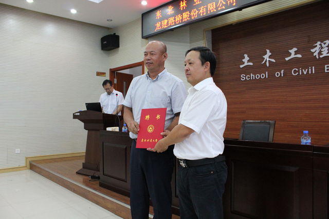 李顺龙副董事长为龙建路桥公司尚云龙董事长颁发客座教授聘书