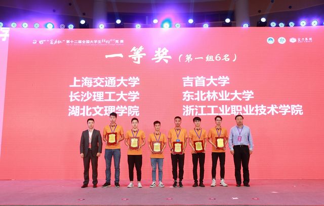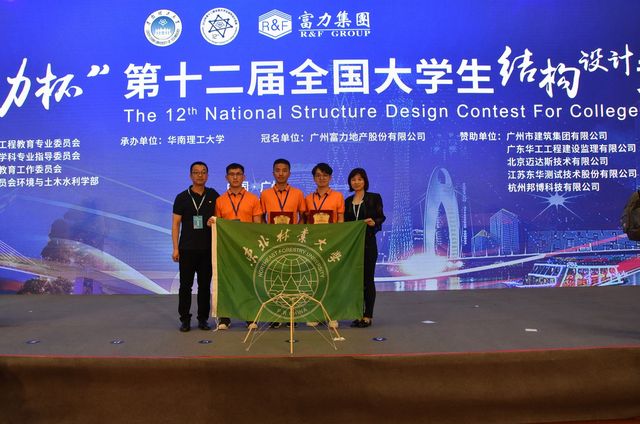 全国543所高校、2000余支队伍参赛,经过各省(市)分区赛的选拔,选出来自全国近30个省、市、自治区和香港特别行政区(香港科技大学、香港大学)的107所高校108支队伍近700名师生参加了本次竞赛。竞赛针对目前出现的许多宏伟而富有特色的大跨度建筑为背景,以“承受多荷载工况的大跨度空间结构模型设计与制作”为赛题,要求员工针对静载、随机选位荷载及移动荷载等多种荷载工况下的空间结构进行受力分析、模型制作及试验,此三种荷载工况分别对应实际结构设计中的恒荷载、活荷载和变化方向的水平荷载(如风荷载或地震荷载)。由Bwin必赢网址2015级建筑工程专业王鹤然、2016级建筑工程专业张成、2016级交通土建专业谭淞元组成的代表队,经过18个小时的模型制作、4个小时的模型安装与加载,最终荣获“全国一等奖”(全国排名第五,),Bwin必赢网址获得“优秀组织奖”。