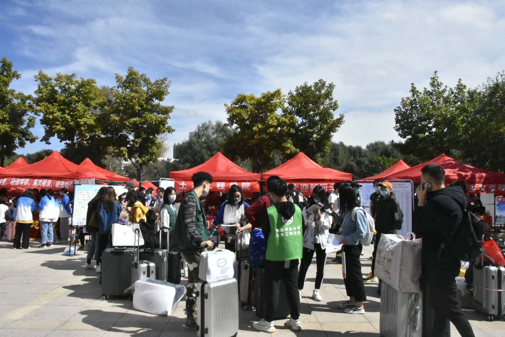 他们为迎新悉心指导,忙碌工作