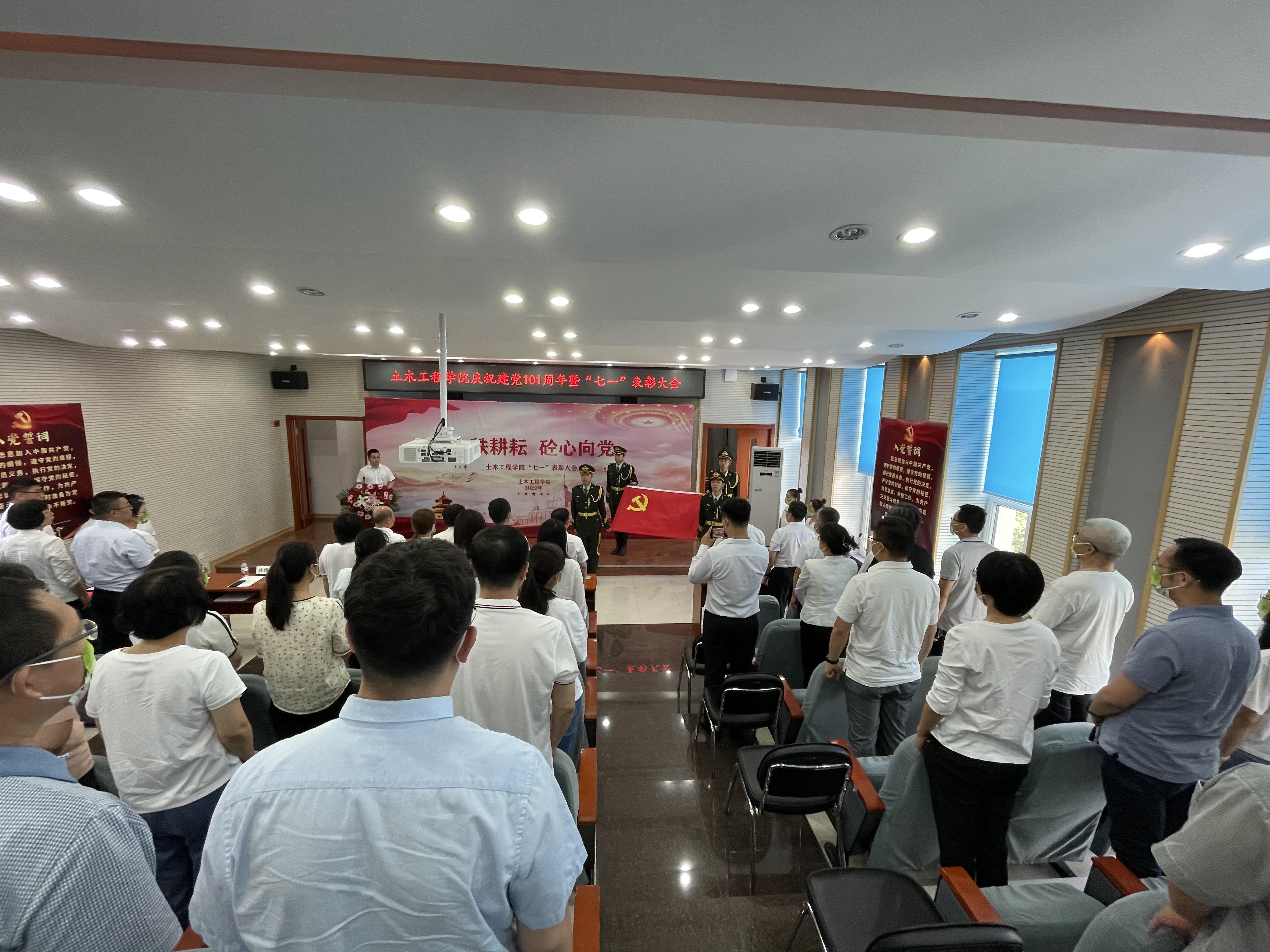 会议伊始,学院全体师生庄严面向党旗,全体起立奏唱国歌。