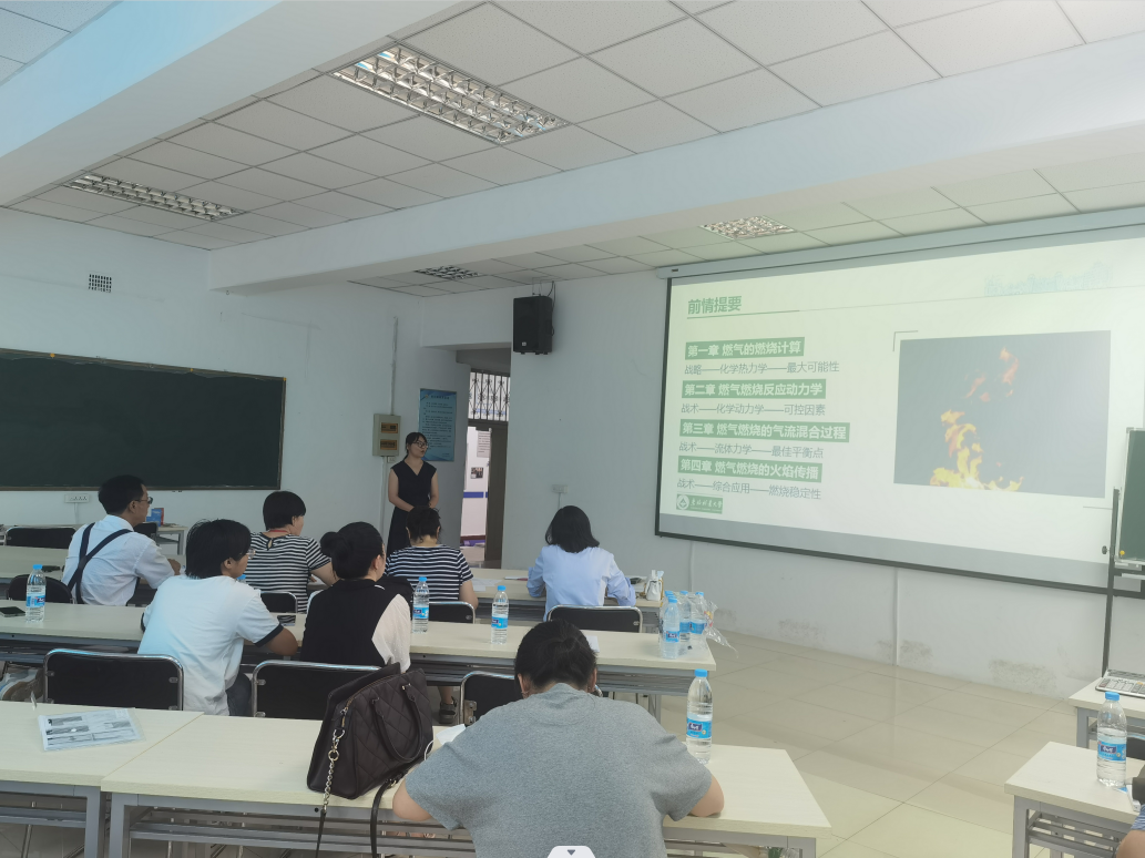 参赛教师结合自己的课程特色,同台竞技,各显风采。刘金亮老师通过生动图片讲解桥梁结构的极限状态分类,张雪丹老师介绍了燃气燃烧的定义、方法及火焰特性,贾永峰老师用“福建舰”引出理论力学点的速度合成定理。