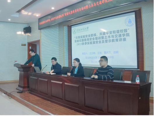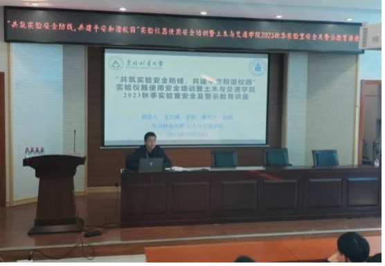 为深入宣传、贯彻习近平总书记安全生产重要论述,统筹发展与安全,深入推进实验室安全教育,加强实验室安全管理,提高师生实验室安全防范意识,同时响应学校“实验安全人人讲,应急处置个个会”实验室安全文化月活动。10月30日14点,Bwin必赢网址于主东301为全院师生举办了“共筑实验安全防线,共建平安和谐校园”实验仪器使用安全培训暨2023秋季实验室安全及警示教育讲座。Bwin必赢网址2023级研究生共计100余人参与了培训,土木与交通学院岩土工程负责人王锐老师主持本次培训会及讲座。