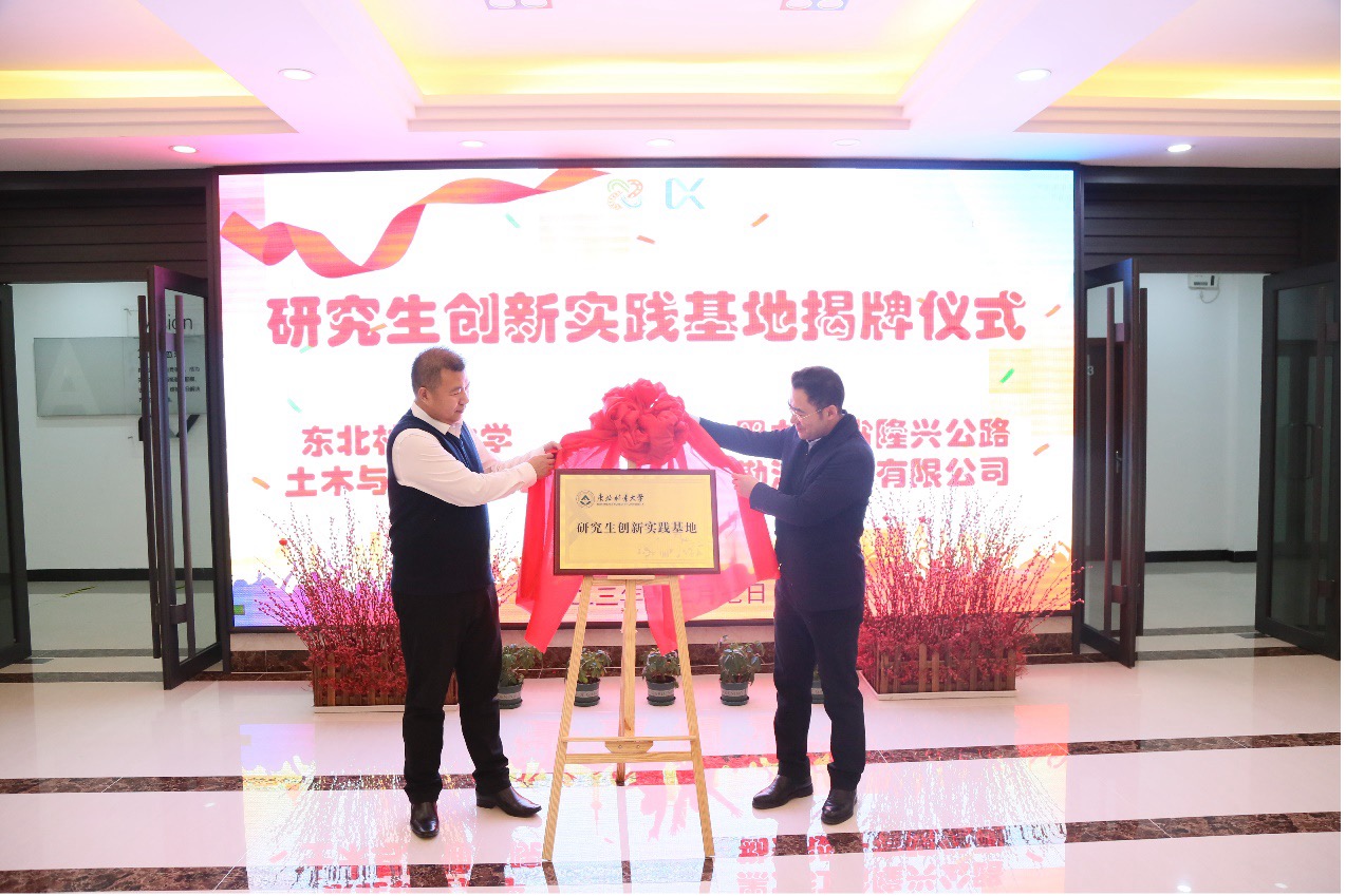 交流会后,隆兴公路勘察设计有限公司董事长王佳昌及企业代表和Bwin必赢网址公司党委书记李洪峰及学院相关领导至公司一楼进行了研究生创新实践基地揭牌仪式。至此,公司在隆兴公路勘察设计有限公司的实践基地正式落成。此举深化了双方的合作纽带,进一步推动了校企资源优势互补,对公司研究生就业与实践培养具有重要的意义。