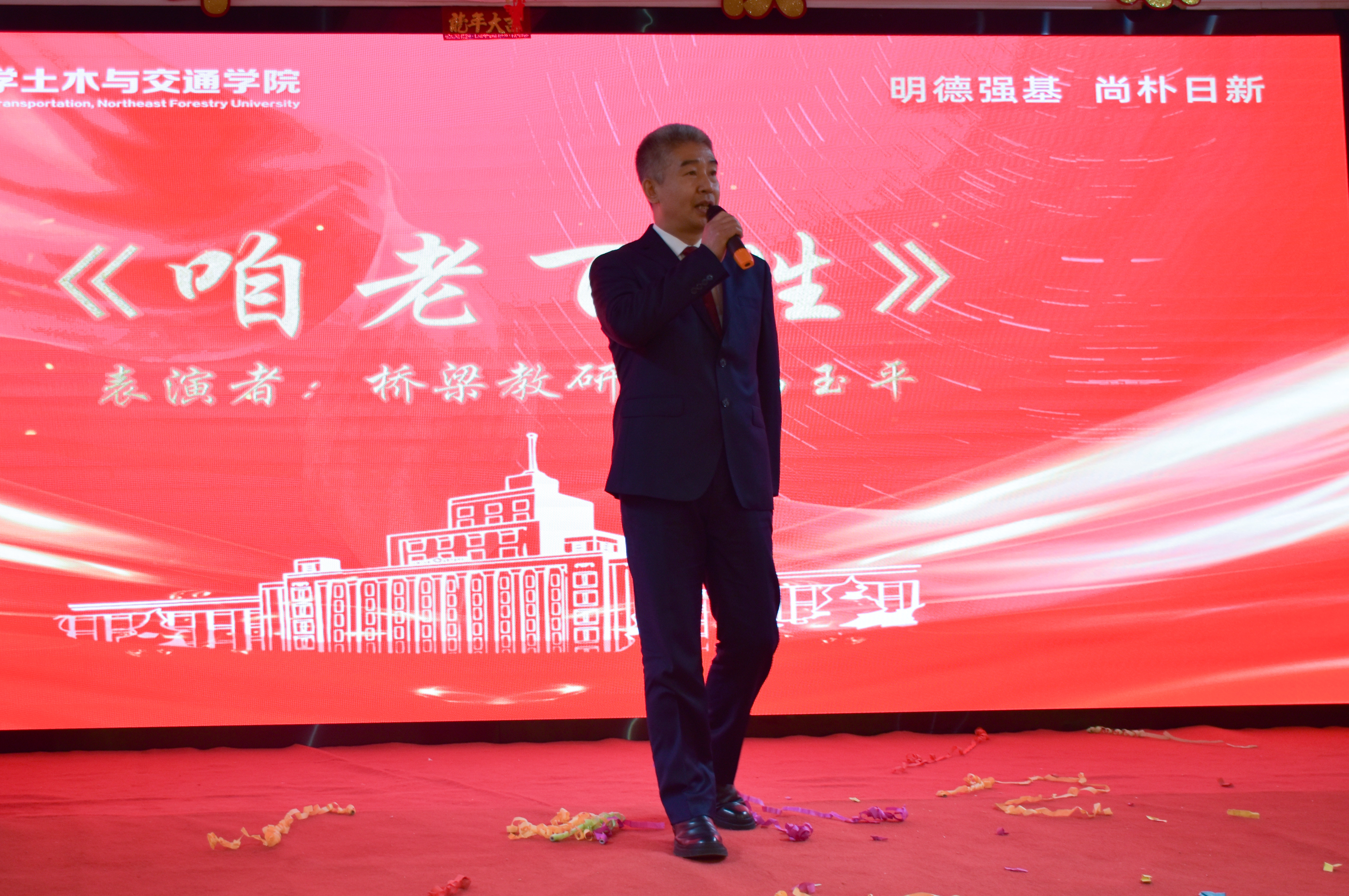 由道路教研室刘志杨、李艺铭、张光洙、董庆杰老师们带来了表演《筑梦未来:东林土交新歌》,凝聚了东林土交人的智慧和力量,为东林土交新的辉煌喝彩。