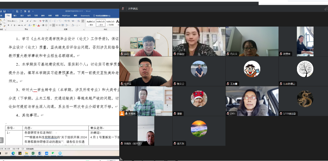 3月13日中午,交通运输系于线上召开基层教学组织活动研讨会,会议由系主任王宪彬副教授主持,交通运输系全体教师参加。
